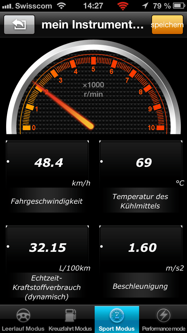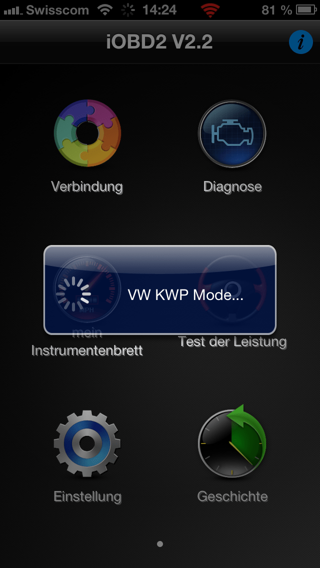 iOBD2 ist ein Fahrzeugdiagnosetool, bestehend aus einem Dongle der am Fahrzeug angeschlossen wird und einer passenden Software, beziehungsweise App. Diese ist für iOS und Android Smartphones entwickelt und wird über WiFi mit dem Stecker verbunden. Der Dongle unterstützt die Fahrzeugschnittstellen OBDII und EOBDII. Hat man eine Verbindung aufgebaut, zeigt die Software allerlei Daten an, welche jedes Mechanikerherz höher schlagen lässt: Motordrehzahl, Zündzeit, Brennstoffkorrektur, Kraftstoffverbrauch, Kühlmitteltemperatur usw. Wird das Auto gefahren erhält man Livedaten in der «Armaturenbrett»-Ansicht.