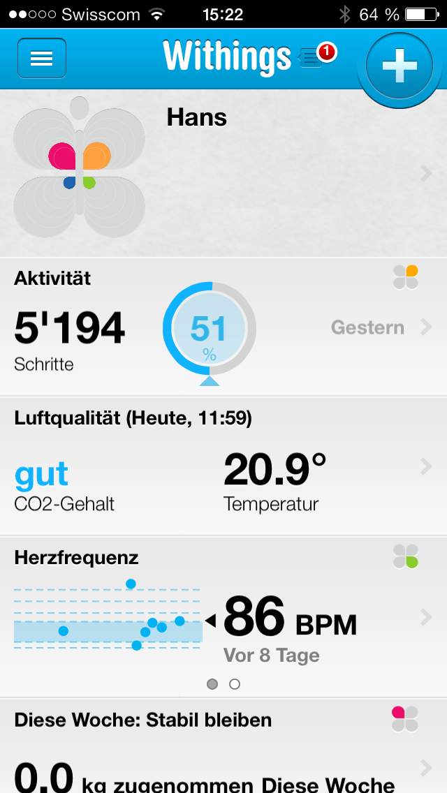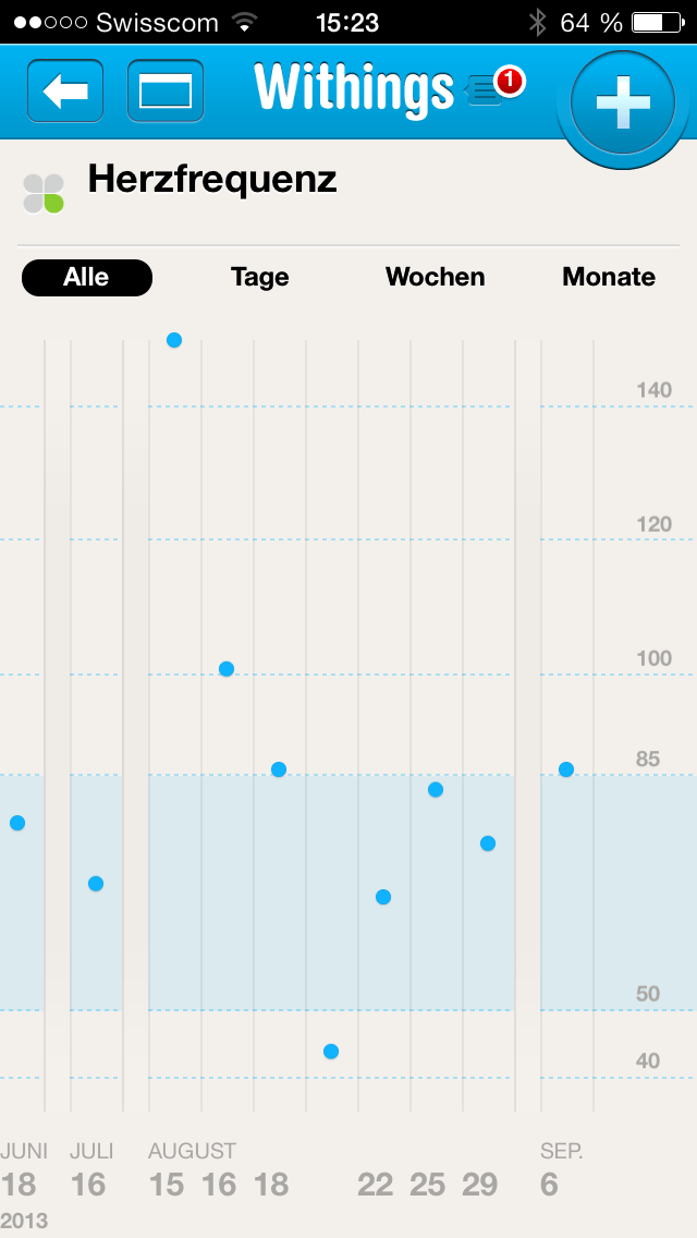 Die Withings Pulse Daten sind in der passenden App abrufbar oder nach einem Sync auch online im Browser. Das Portal wurde erst kürzlich überarbeitet und fast die Daten übersichtlich und gut zusammen. Die Stärke bei Withings liegt in der Vielfalt ihrer Geräte. Nebst dem Aktivitätstracker fliessen in die Gesundheitsdaten auch die Messungen mit dem Withings Smart Body Analyzer oder dem Blutdruckmessgerät aus dem selben Haus. Letzteres besitze ich nicht, aber der Zusammenzug aller Daten macht durchaus Sinn und vermittelt einem einfach lesbare Informationen zum allgemeinen Befinden! Man kann sich Ziele setzen und wird per App immer auf dem laufenden gehalten und mit Zwischenzielen motiviert.