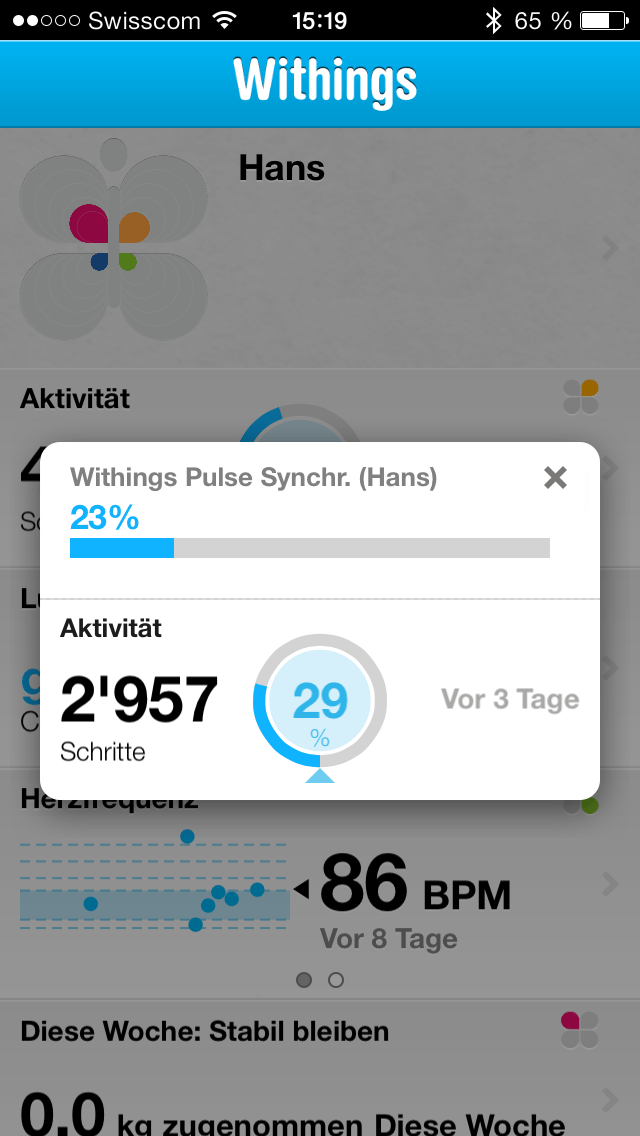 In Sachen Einrichtung muss man den Leuten bei Withings nichts erklären. Schon bei der Withings Waage ging das alles sehr einfach von der Hand – so auch beim Pulse. Ich habe ihn also mit dem Smartphone verbunden, die App gestartet und der Rest ist selbsterklärend und innerhalb weniger Minuten abgeschlossen. Dank meinem bereits vorhandenem Profil bei Withings durch die Waage ging das natürlich noch zackiger, das Profil lässt sich direkt beim Pulse weiterverwenden!